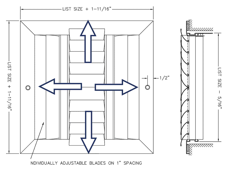 · Four way individually adjustable curved blades on 1” spacing