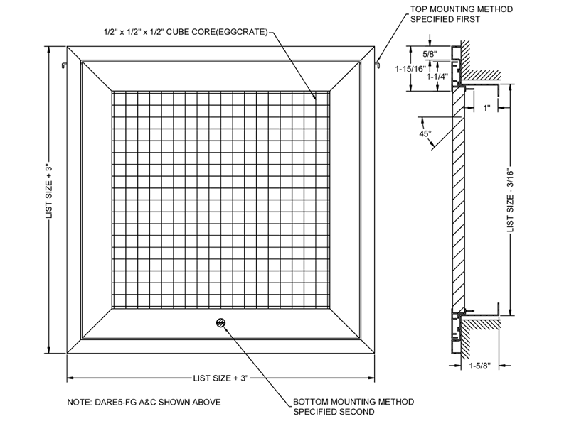 Dayus products are made-to-order. They are NON-RETURNABLE. The minimum Dayus order amount is $45 which will be reflected in the basket. List dimensions are the hole measurements. Dayus grilles are undercut to fit inside the hole.