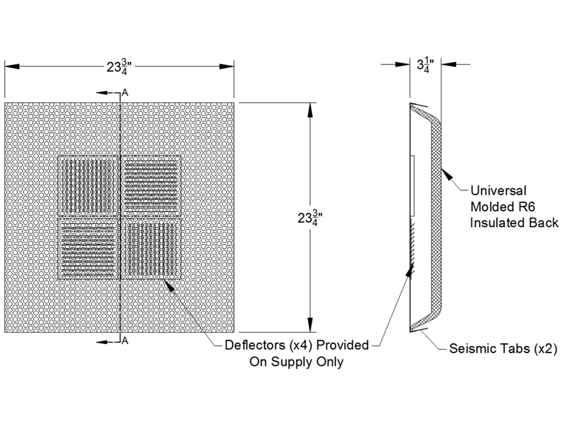 - Back: Fiberglass molded plenum / Seismic support tab. R6 rated.