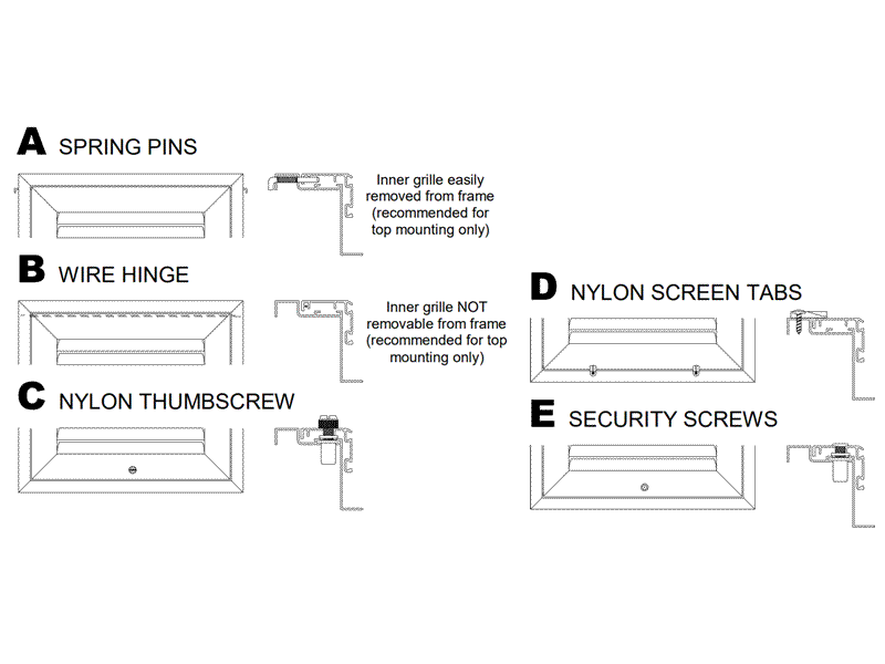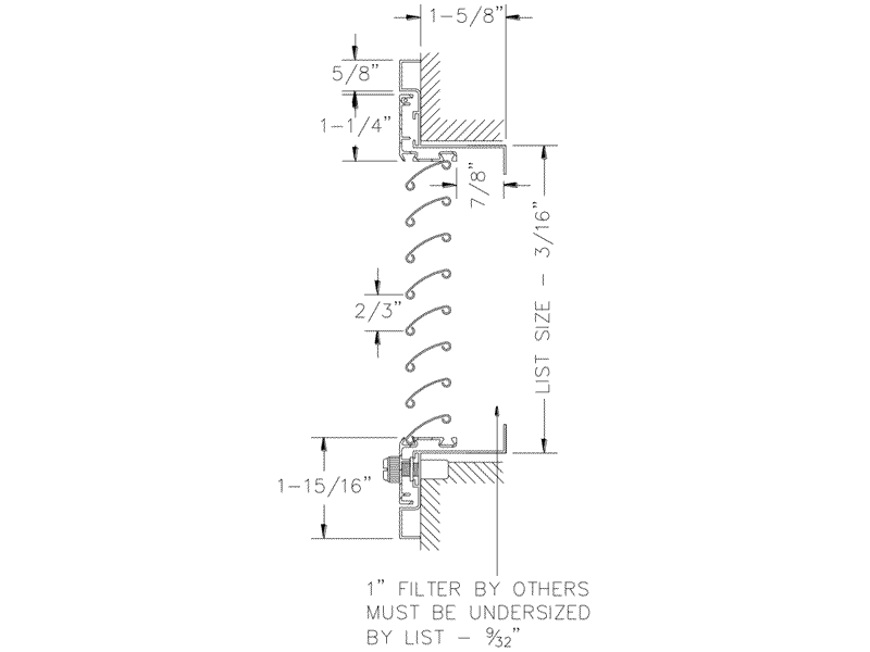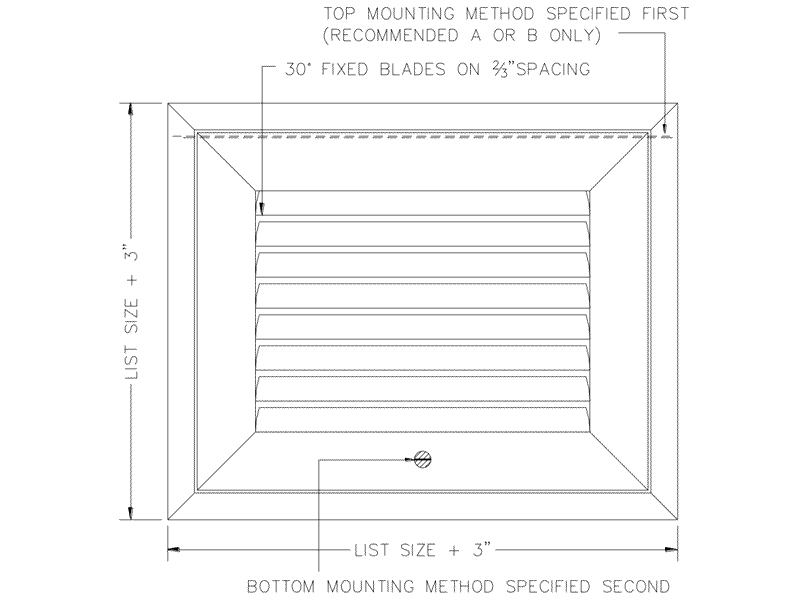 · Horizontal blades fixed on 30 degree deflection and 2/3” spacing