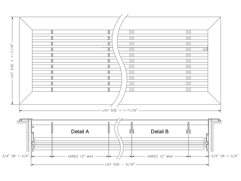 Dayus products are made-to-order. They are NON-RETURNABLE. The minimum Dayus order amount is $45 which will be reflected in the basket. List dimensions are the hole measurements. Dayus grilles are undercut to fit inside the hole.