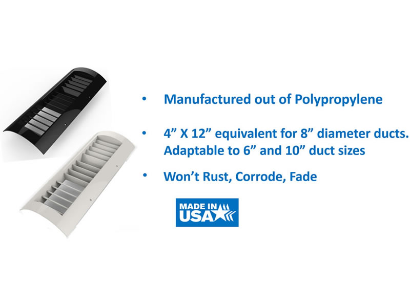 HaVACo plastic spiral duct registersWon't rust, corrode, discolor or fade.