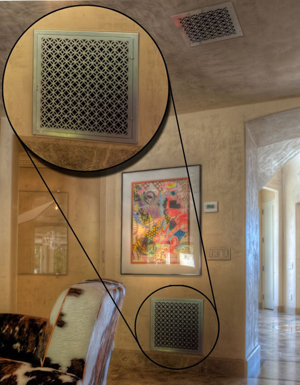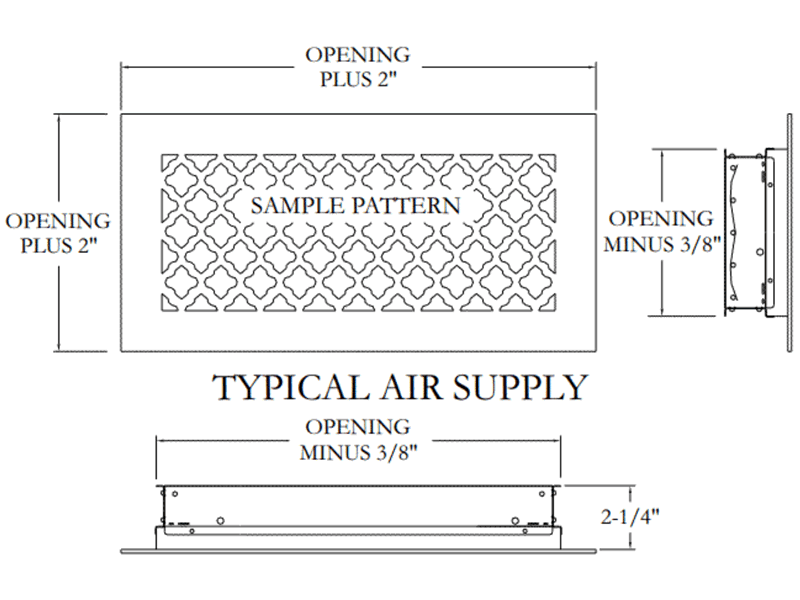 Standard 1/8-inch thick laser cut steel is used on all suppy registers and return grilles and supplies include an attached air control damper.