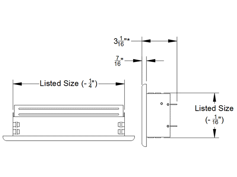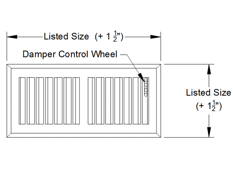 Sizes listed below are LIST SIZES -- opening size. A 6x12" LIST SIZE grille will cover a 6x12" floor opening. The actual outer size of the grille frame is larger.